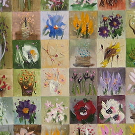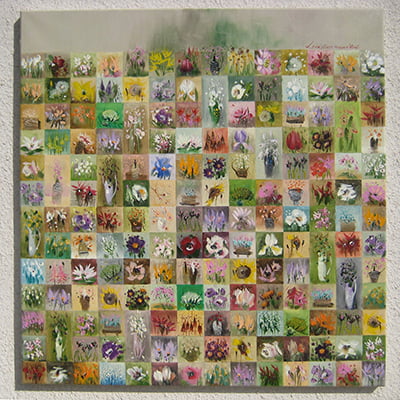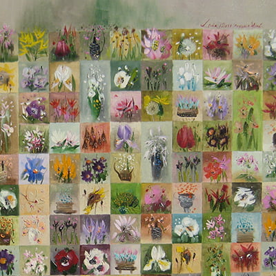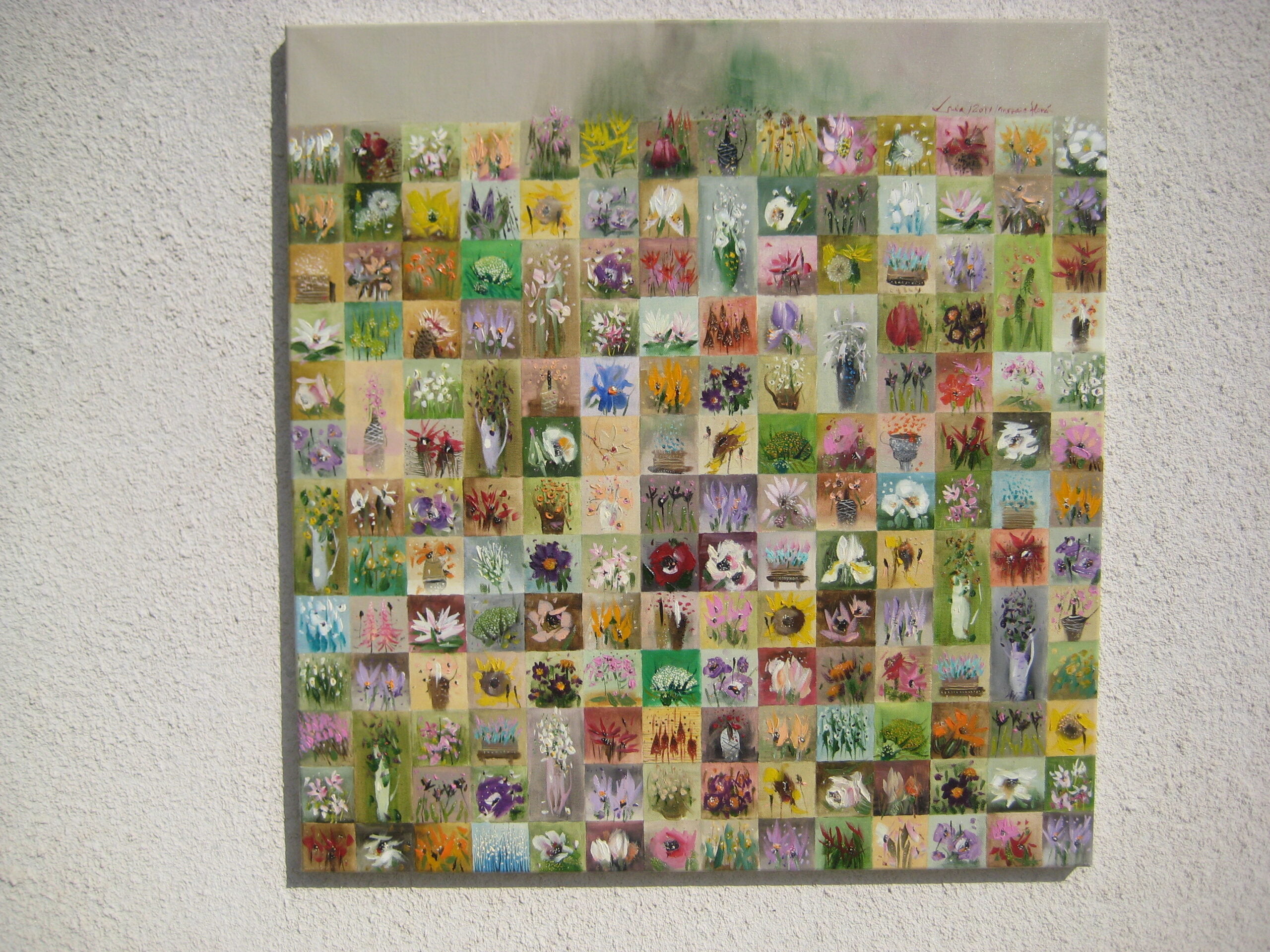 Încântați-vă privirea cu acest tablou original semnat de Marin Gruia, o operă de artă unică ce formează un mozaic vizual compus din 171 de miniaturi florale. Fiecare detaliu este pictat cu măiestrie, capturând frumusețea și gingășia naturii într-o compoziție impresionantă.